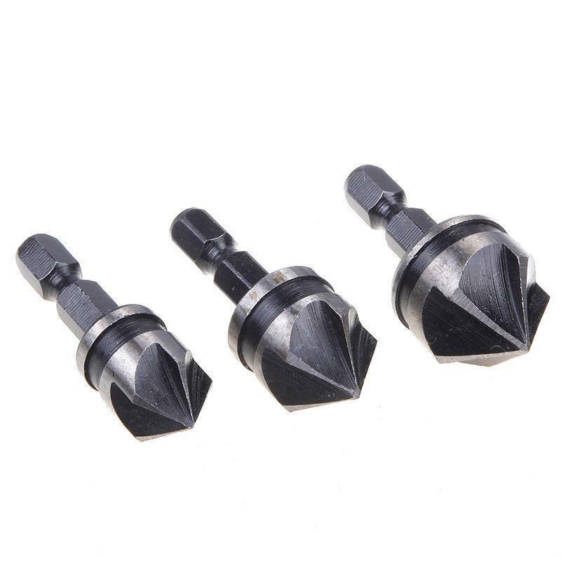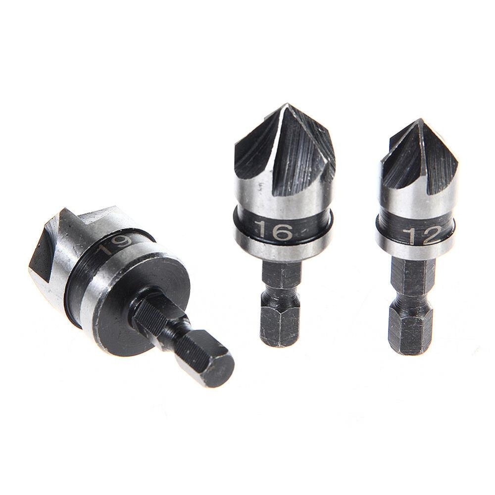 3-Piece Countersink Drill Bit Set – Includes the most commonly used sizes: 12mm, 16mm, and 19mm, perfect for woodworking and metalworking projects.