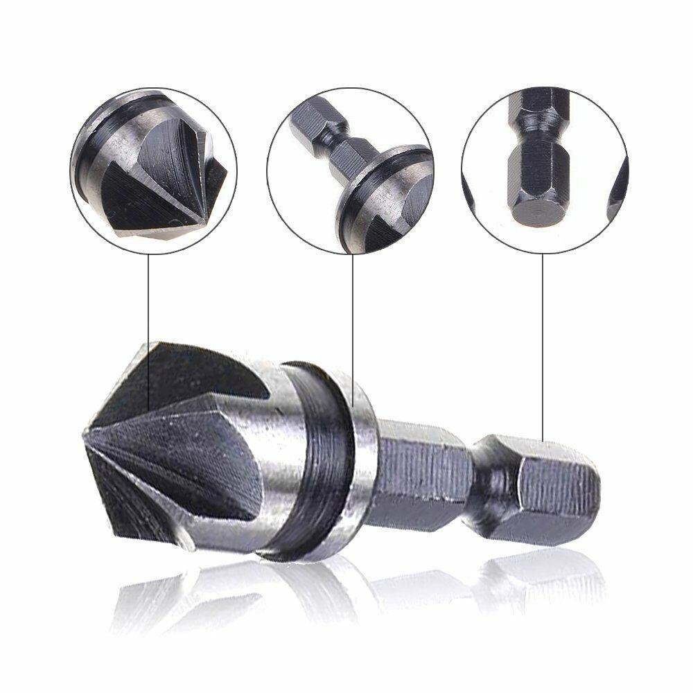 This 3-piece Countersink Drill Bit Set features 5-flute HCS bits in 12mm, 16mm, and 19mm sizes with a 90° angle—perfect for wood, plastic, and soft metals. Designed with a 1/4″ hex shank for quick changes and blackened for durability, it ensures smooth, clean chamfering.