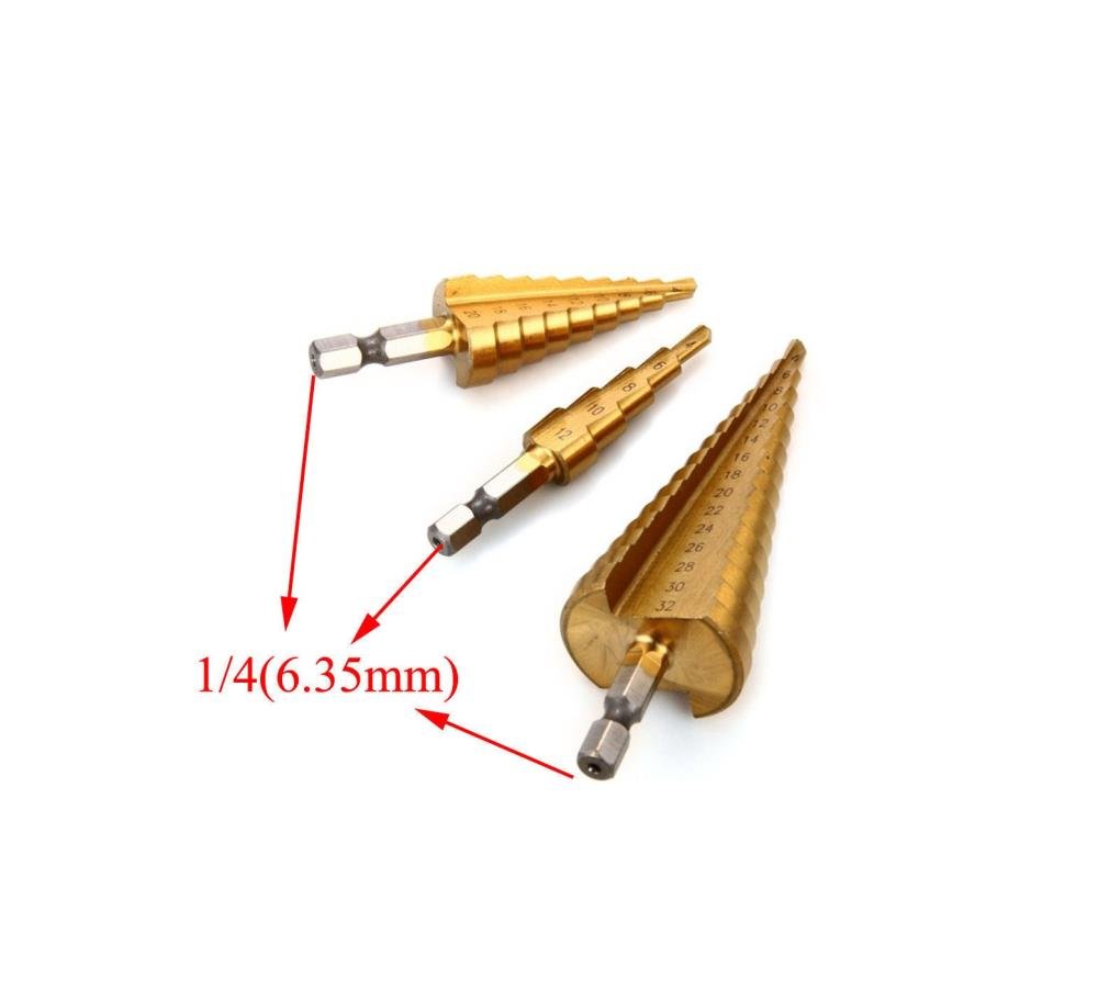 3 Pcs Large HSS Steel Step Cone Drill Titanium Bit Set Hole Cutter 4-12/20 /32mm