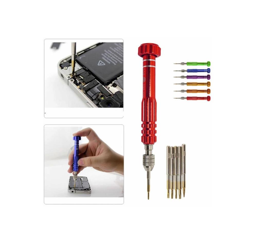 6-in-1 Precision Screwdriver Set is a professional-grade tool kit designed for repairing a variety of devices including iPhones, Samsung smartphones, tablets, PDAs, laptops, and more. Whether you’re replacing a screen, opening a device, or tightening internal components, this toolkit has you covered.