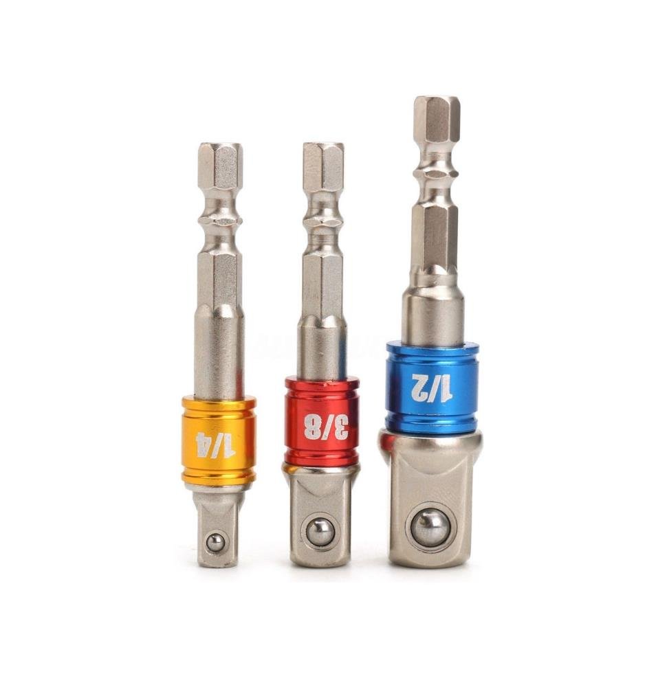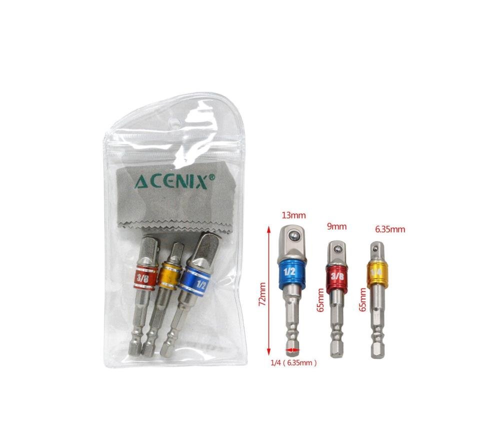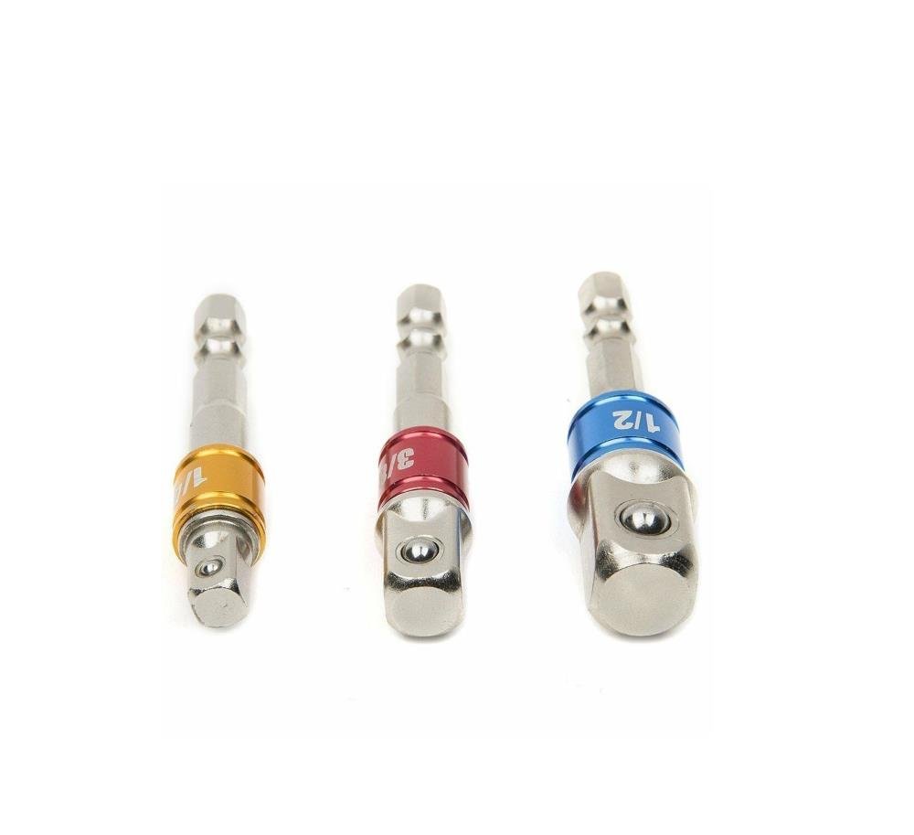 3-Piece Set: Includes 1/4″ (65mm), 3/8″ (65mm), and 1/2″ (73mm) socket adapters