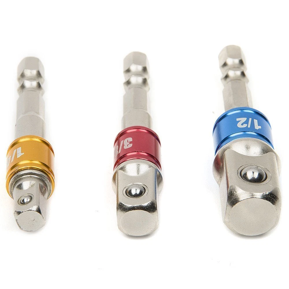 Universal 3-Piece Set – Includes the three most commonly used drive sizes: 1/4″, 3/8″, and 1/2″, converting your drill into a socket driver quickly and easily.