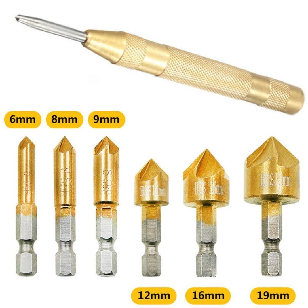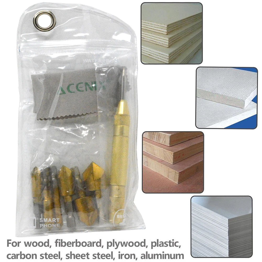 ACENIX® 7pcs Countersink Drill Bits Set + 1 Brass Automatic Center Punch Tool