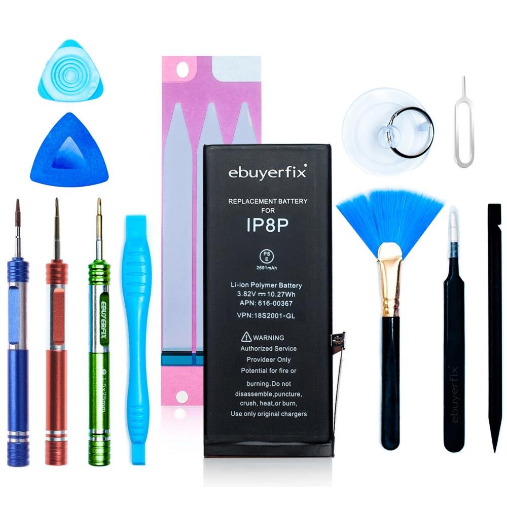 Replacement 2675mAh Li-ion Internal Battery for iPhone 8 Plus with Complete Repair Replacement Tools Kit. Also comes with adhesive stickers and instructions. Capacity: 2675mAh and 500 plus life cycles.