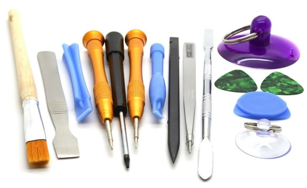 Tool Types: Precision screwdrivers, pry tools, tweezers, suction cup, SIM pin, and more