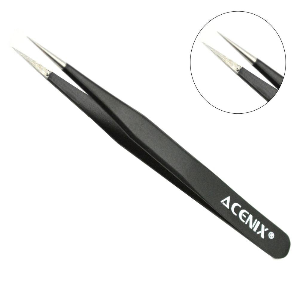 ESD-Safe Tweezers – Straight-tip tweezers protect sensitive electronics from electrostatic damage during repairs.
